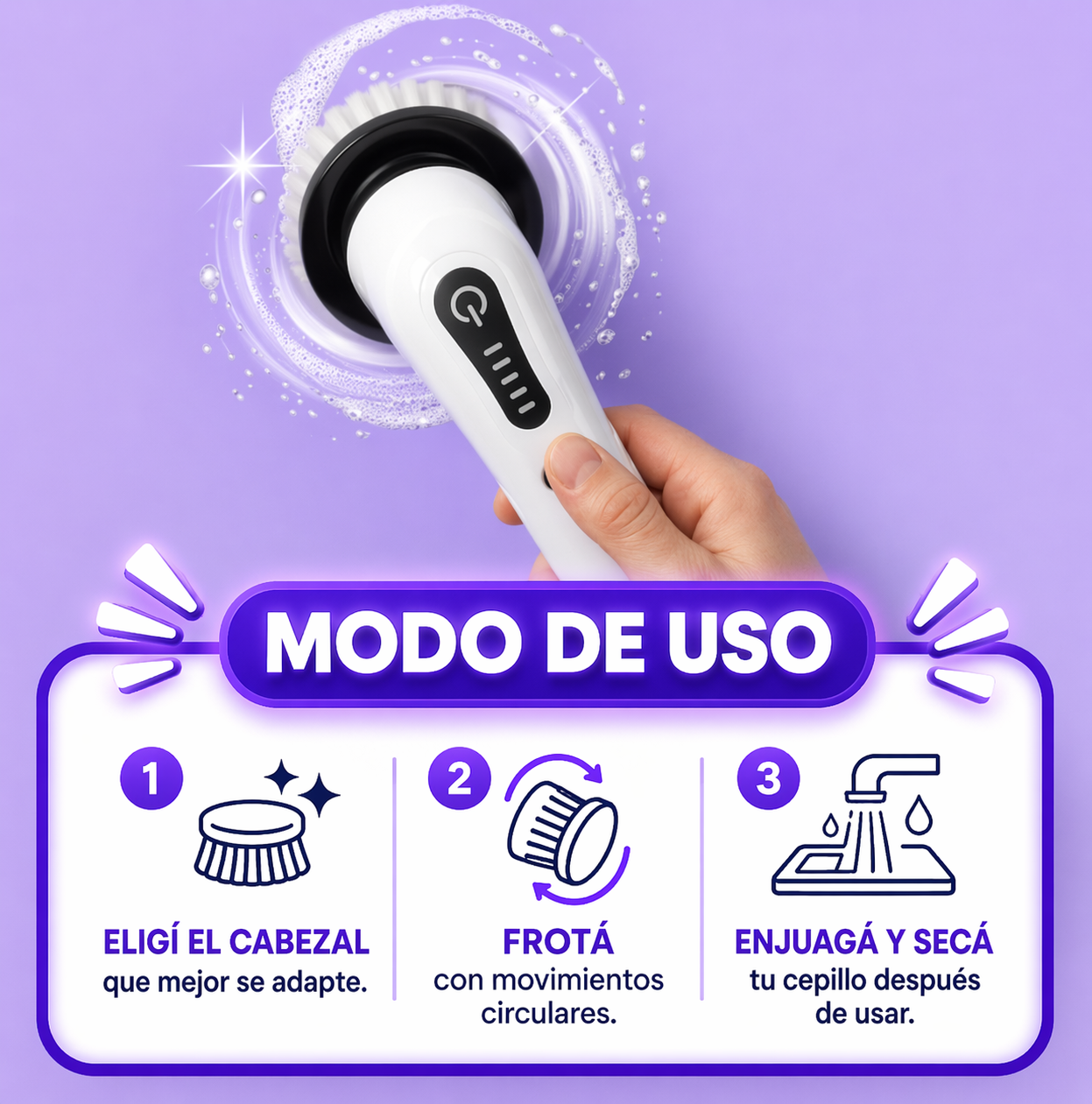 Solo encendé, apoyá y dejá que el cepillo haga el trabajo.